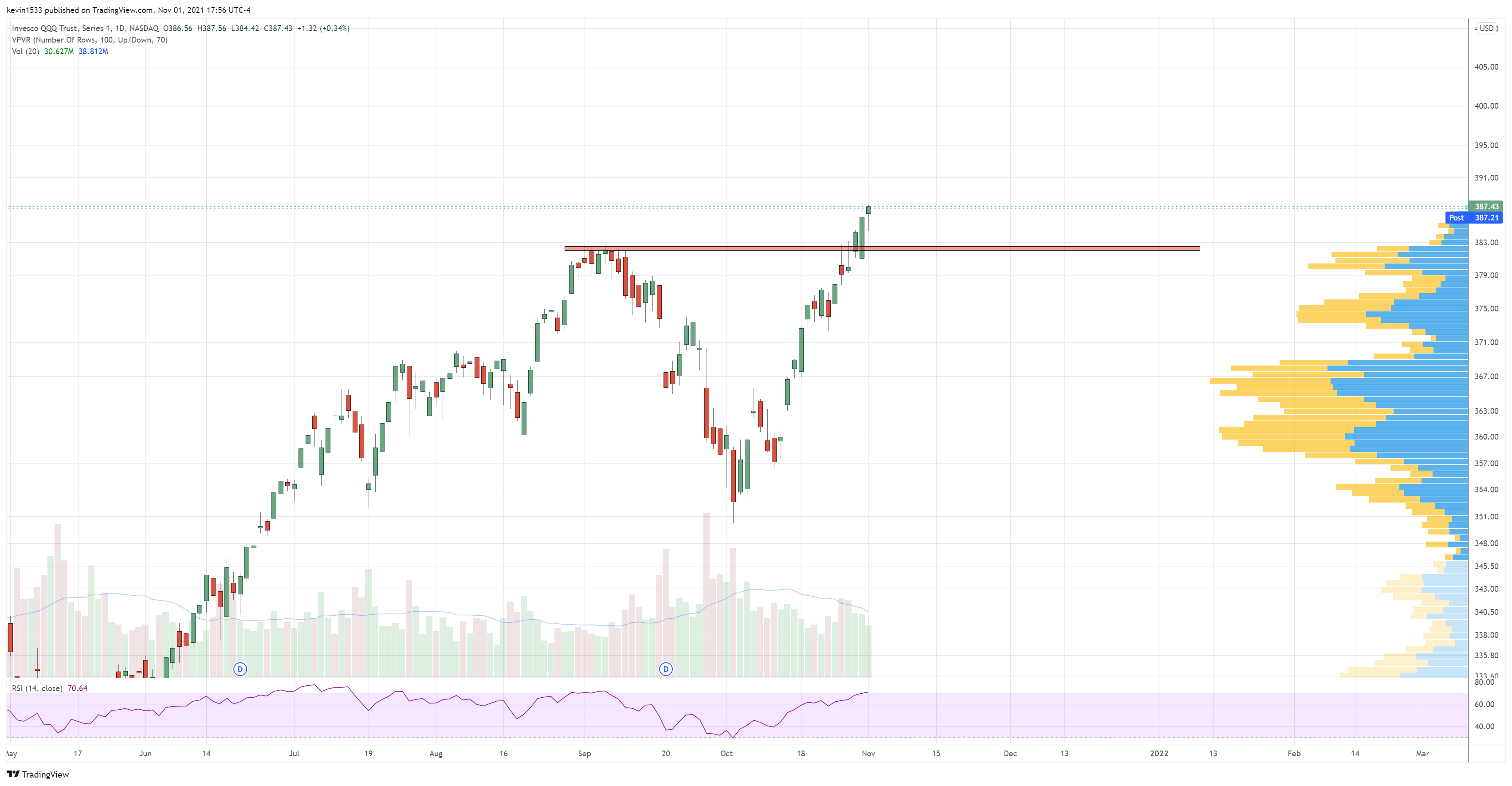 $QQQ (daily) hanging man (potential reversal signal – need confirmations bearish candle tomorrow)